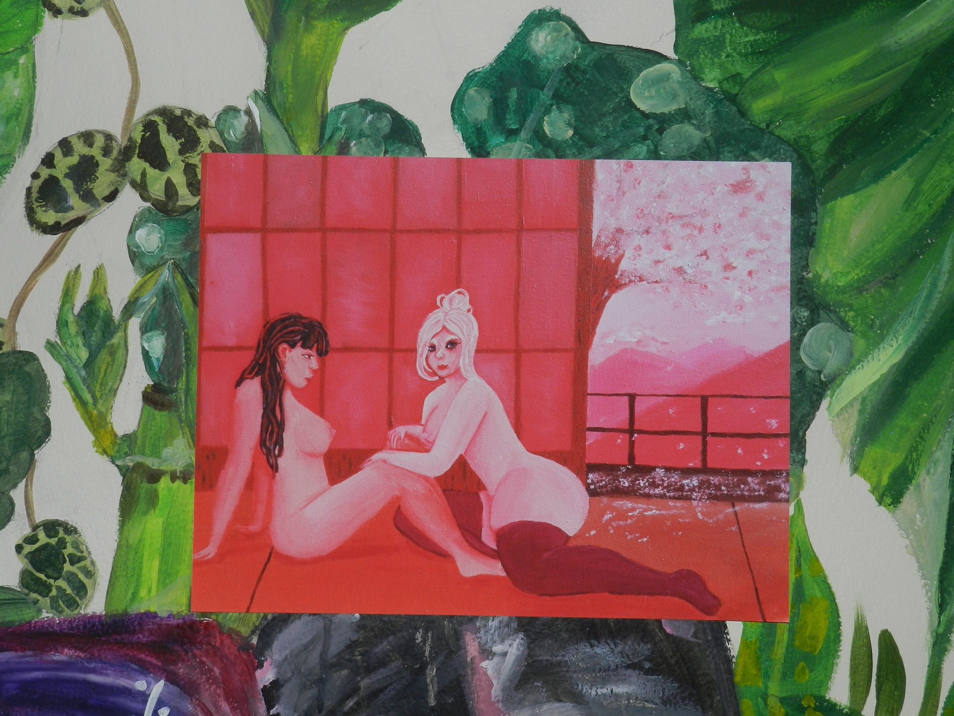 Experience the delicate beauty of Cherry Blossom Lesbians with this intimate print by artist Peony Rabbit. Featuring a stunning range of soft pinks, this print is available in 4x6in and 8.5x11in sizes. Bring love and serenity into any space with this enchanting piece.