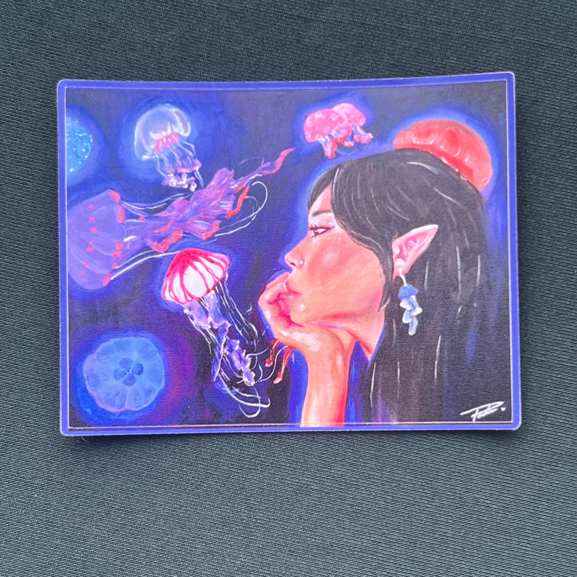 Discover the captivating Jellyfish Princess Sticker, featuring a stunning woman amidst a mesmerizing jellyfish backdrop by renowned artist Paulina. Perfect for adding a touch of enchantment to any surface, this sticker is a must-have for fans of fantasy and marine life.
