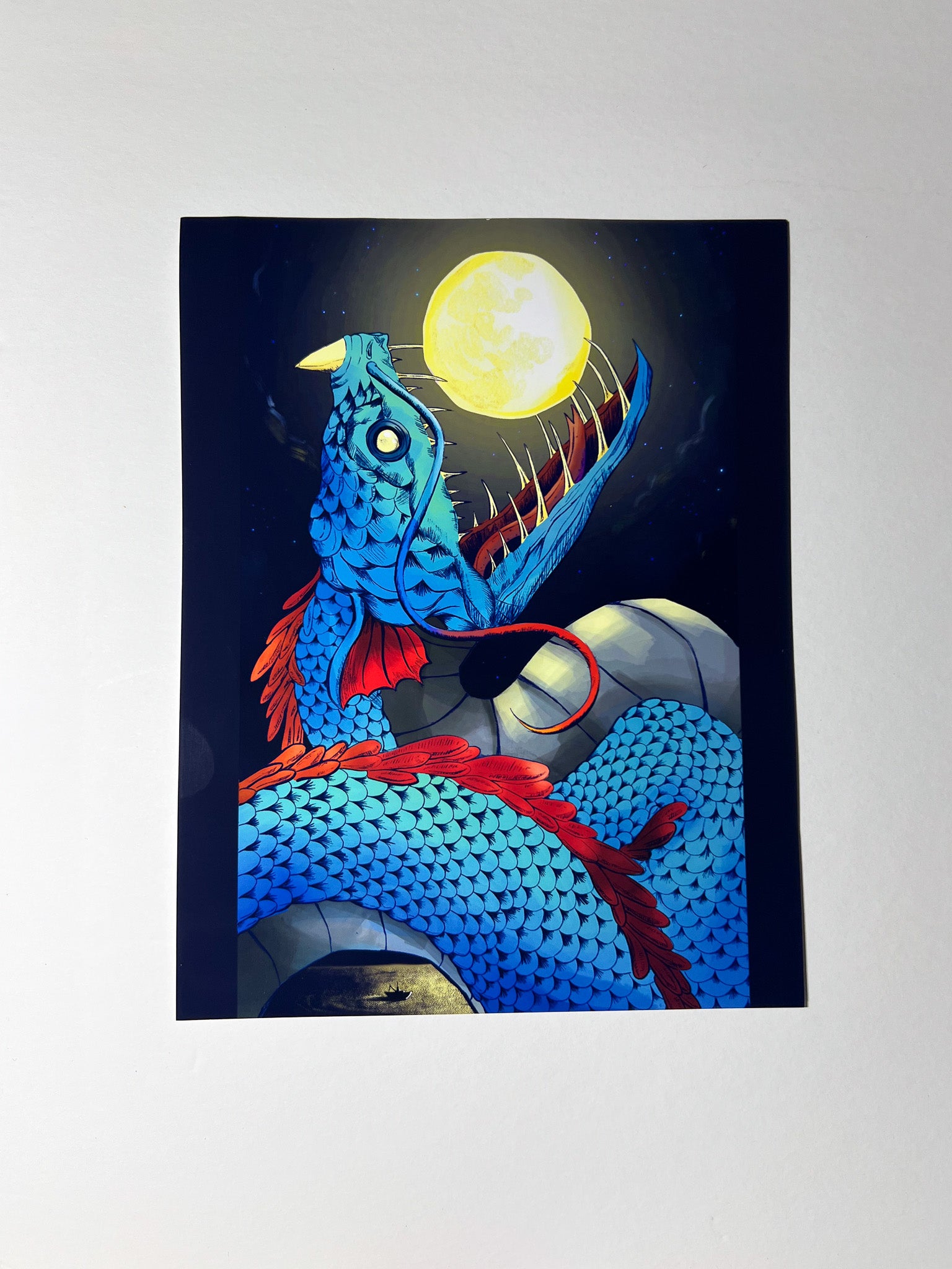 Capture the beauty of Philippine mythology with the Philippine Bakunawa Print by NickHidesArt. Featuring the legendary Bakunawa, this digitally drawn print depicts the creature's obsession with the moon and its power to cause eclipses and earthquakes. Don't miss out on this unique and artistic representation of a popular myth.