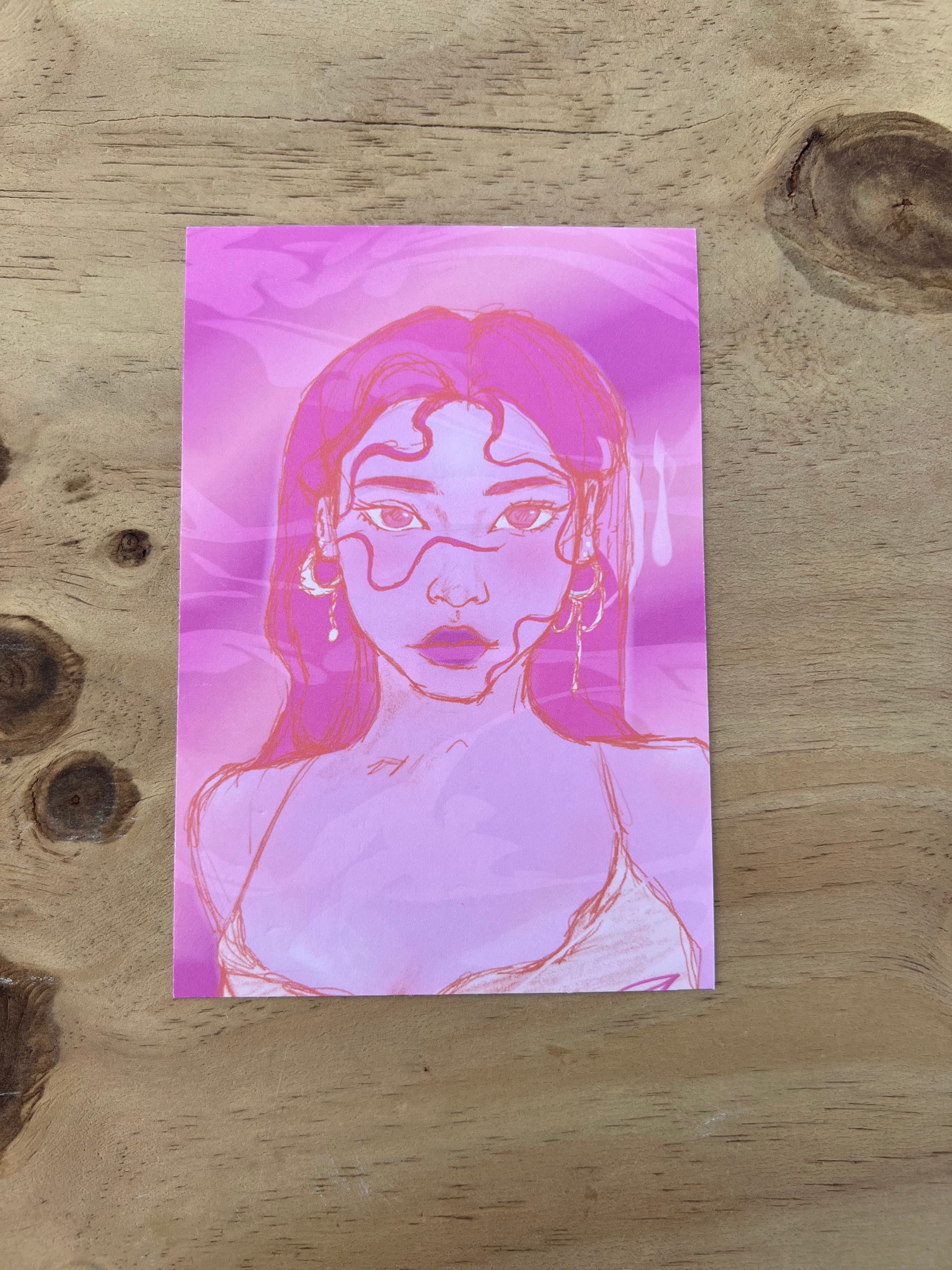 Experience the beautiful and unique Pink Print, a print of artist Paulina's stunning digitally drawn painting. This one-of-a-kind piece features Pink, a captivating woman surrounded by a vibrant patterned background in varying shades of pink. Elevate your decor with this expressive and contemporary art piece.