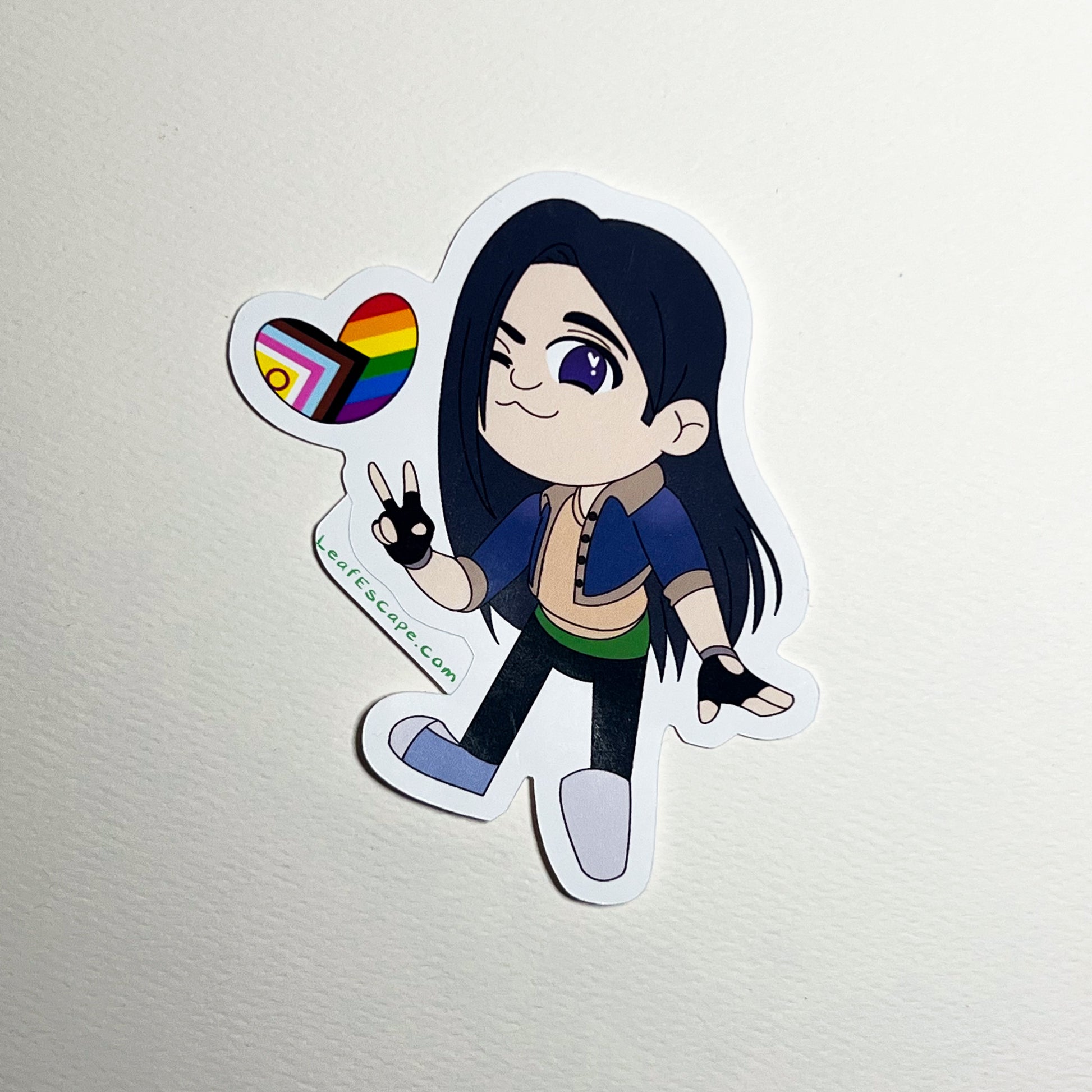 Show your support for LGBTQ pride with this adorable chibi sticker featuring AG Comic's dynamic persona! Digitally drawn with care, this cute AG sticker is perfect for adding to your collection, decorating your laptop or phone, or giving as a gift to someone special. Join the movement and spread love and acceptance with the Progress Pride Girl Sticker!