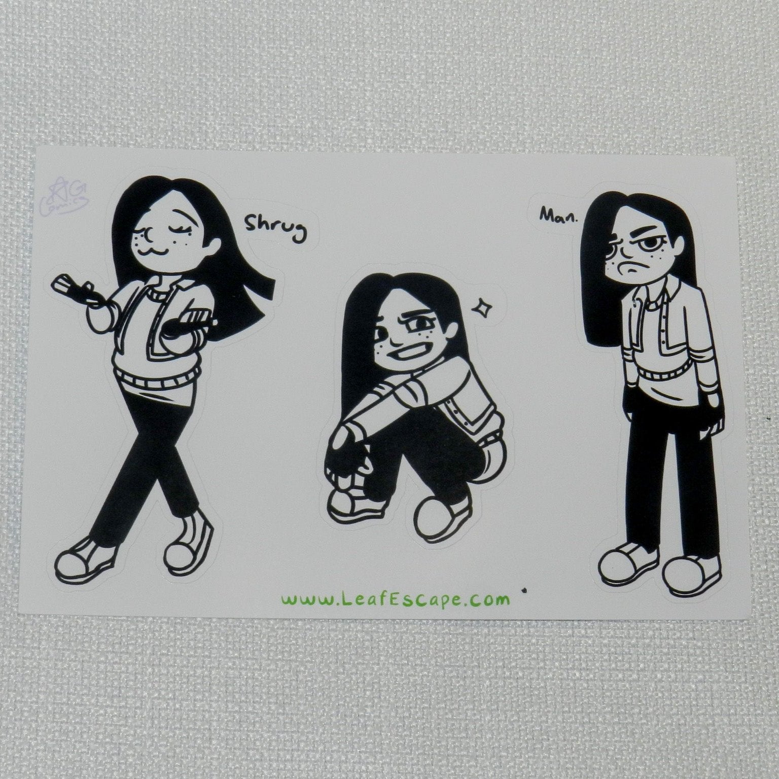 Introduce some silliness into your life with the Silly AG Sticker Sheet #1 by AG Comics! This fun and relatable sticker sheet features 3 posed AG characters in a black and white design. Add these stickers to your collection and let your imagination run wild!