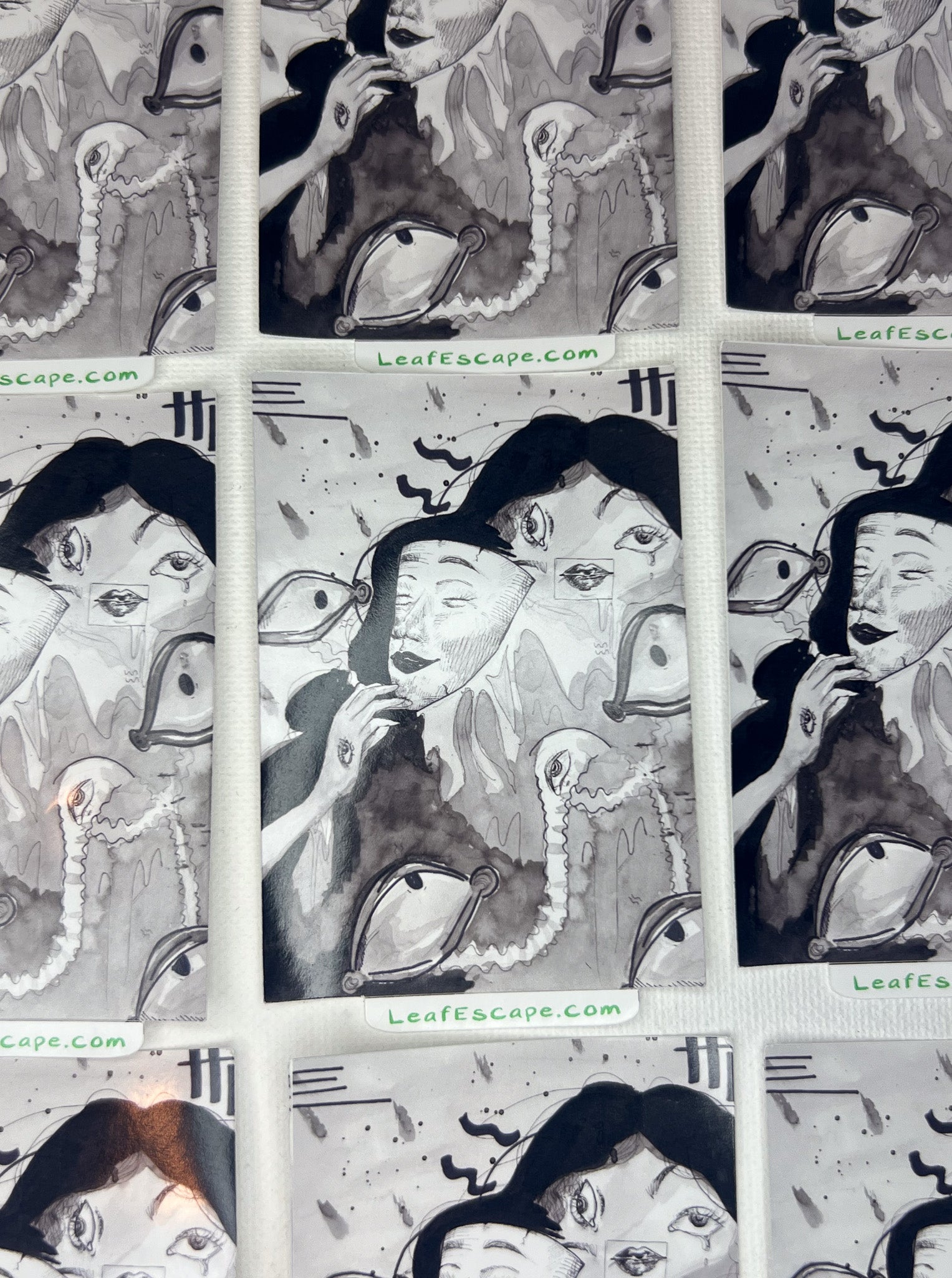 This 3-inch sticker features Melenas' original artwork, capturing a deeply emotional moment. Inspired by feelings of vulnerability and the act of wearing a mask to hide true emotions, the piece uses dramatic ink strokes to convey intensity and edge. Perfect for those who appreciate art that speaks to the complexity of human experience.