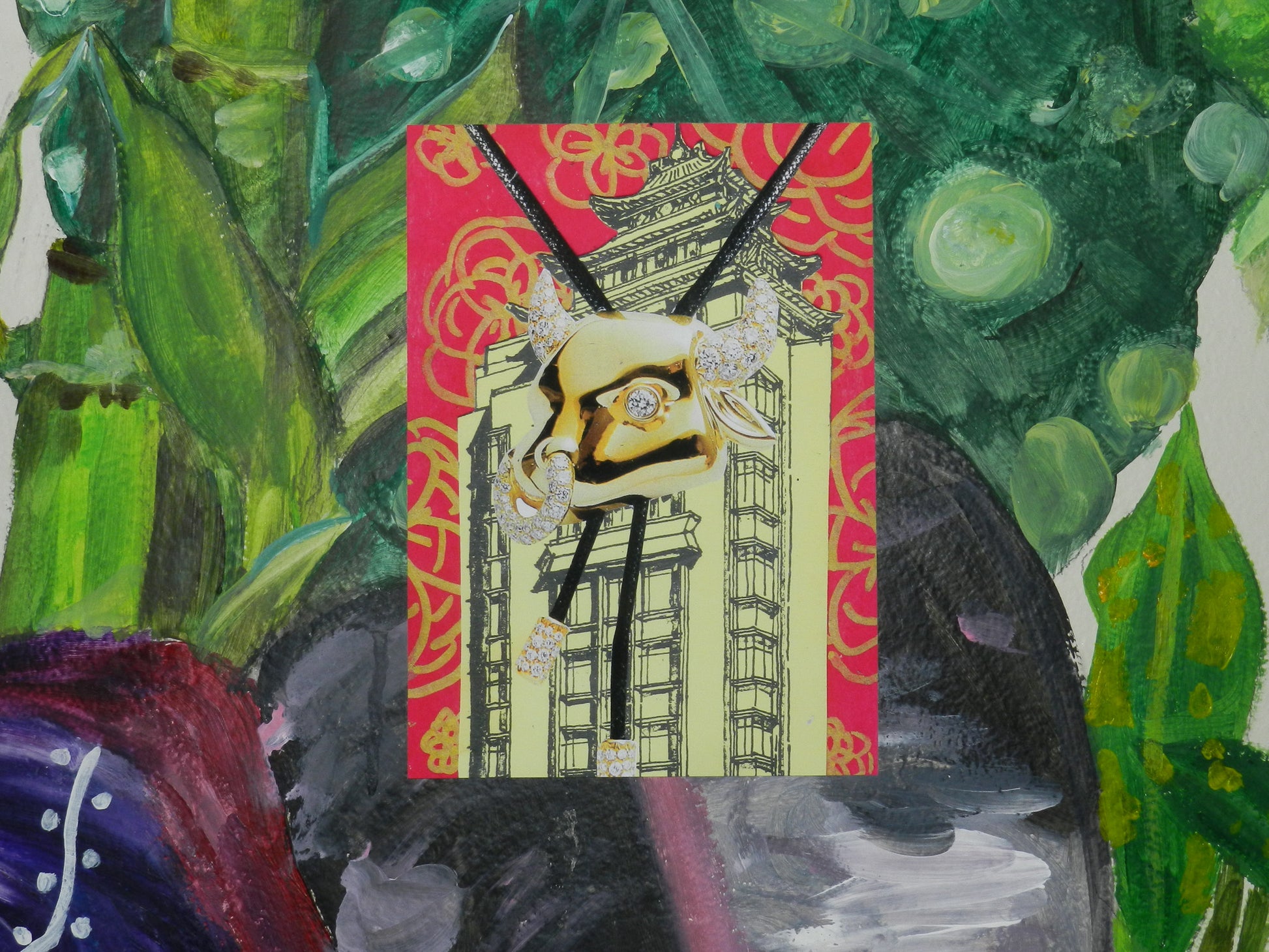 "This was a collage I created for my "What We Face" series which discusses the hardships that Asian Americans face. This piece is meant to represent how Western culture will at time warp and bastardize Eastern culture so that it will "fit in." This was because the Bull Bollo Tie really reminded me of the Year of the Ox in the Chinese Lunar calendar." -Peony Rabbit