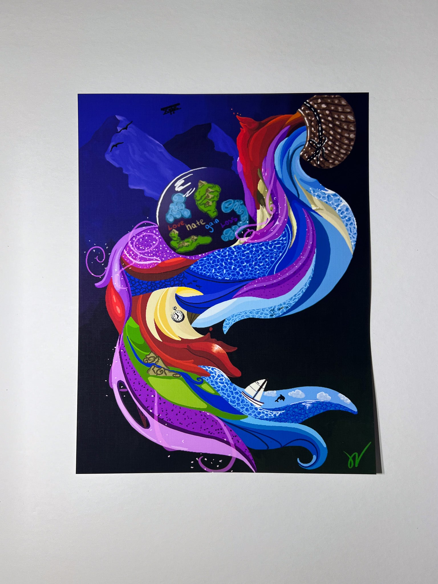 Experience the beauty of life's ebbs and flows with the World Keep Flowin' Print by Valk0rie. This digitally drawn artwork captures the artist's journey through love, loss, hate, and gain. Add a touch of artistic inspiration to your space and let the work keep flowin'.